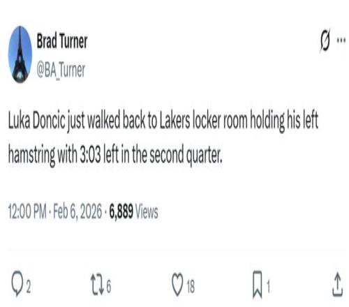 湖人雖然拿下勝利,但核心東契奇因傷退場(chǎng),在第二節(jié)一次進(jìn)攻回合后,東契奇捂著自己的小腿退場(chǎng),期間還踢了一下場(chǎng)邊的廣告牌看起來十分沮喪,隊(duì)記Brad Turner跟進(jìn)曝出東契奇是左腿筋受傷。