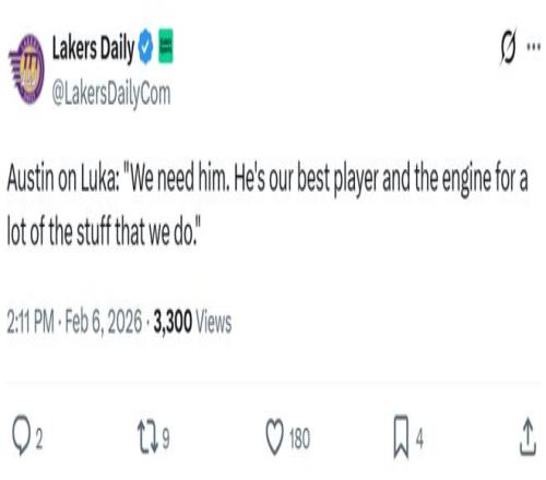 賽后湖人主帥雷迪克被問到相關(guān)問題,他表示東契奇左腿筋有些酸痛,他與球隊(duì)醫(yī)療團(tuán)隊(duì)一致認(rèn)為東契奇無法重返賽場(chǎng)。