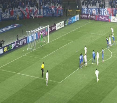 第87分鐘,相馬勇紀接隊友禁區(qū)內(nèi)倒三角,中路勁射破門,梅開二度,申花0-2落后!