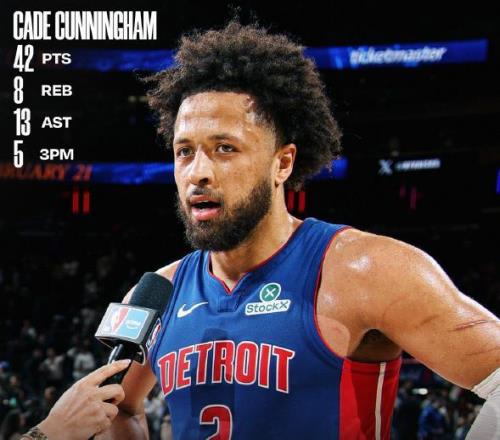 活塞和雷霆一樣,都是靠著年輕球員崛起成為聯(lián)盟強隊,目前坎寧安這個24歲小將已經(jīng)成為活塞頭號球星,場均25.7分非常閃耀,他是球隊進攻端不可或缺的大殺器,本場比賽他狂砍42分,證明他的價值和潛力。
